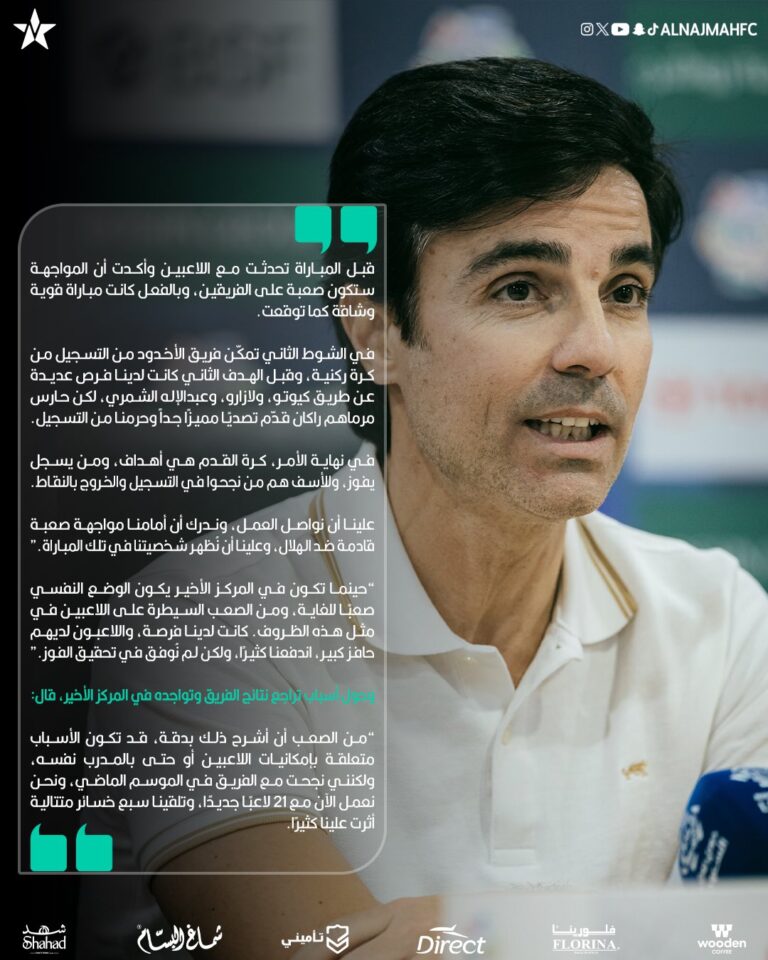 أبرز ماجاء في المؤتمر الصحفي للمدير الفني “ماريو سيلفا” بعد مباراة الاخدود والنجمة