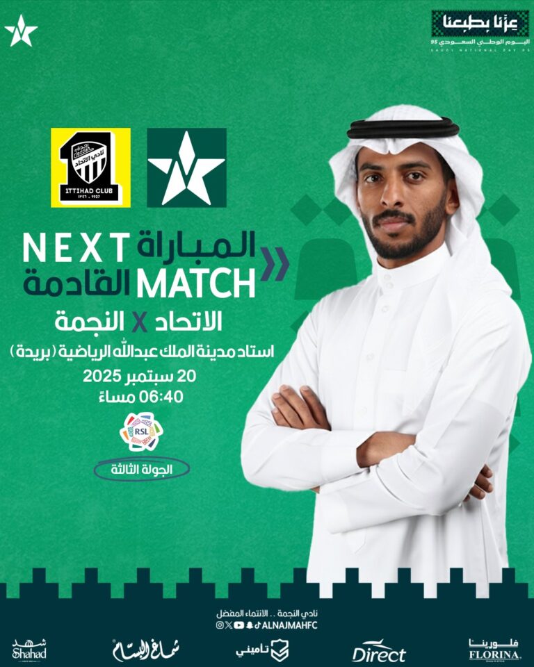 غداً السبت .. نجمة عنيزة على ملعبنا لـمواجهة فريق الاتحاد في الجولة الثالثة من دوري روشن السعودي #عزنا_بطبعنا