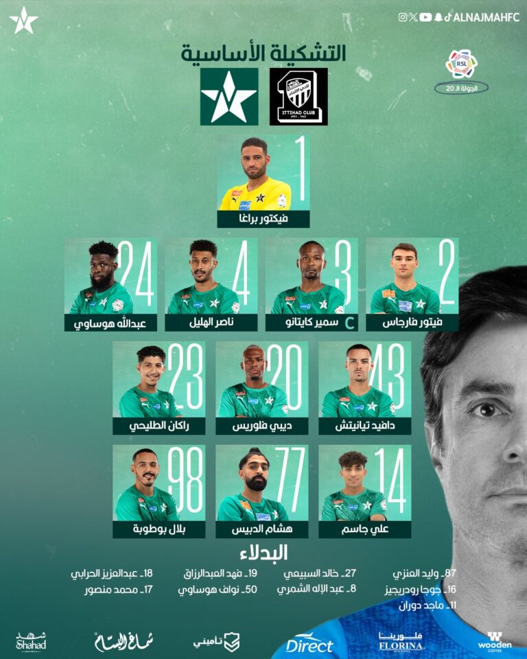 قائمة نجمة عنيزة لمواجهة “الاتحاد ” تحت قيادة المدرب “ماريو سيلفا”