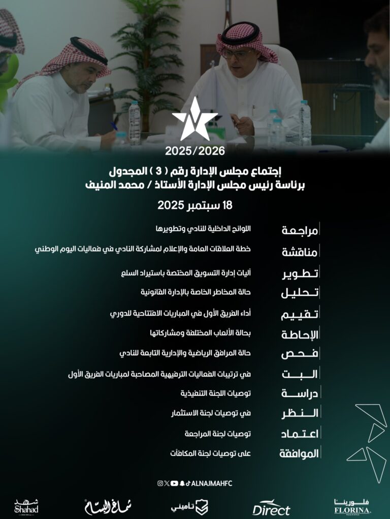 مجلس الإدارة يعقد اجتماعه الثالث (المجدول) 2026-2025.