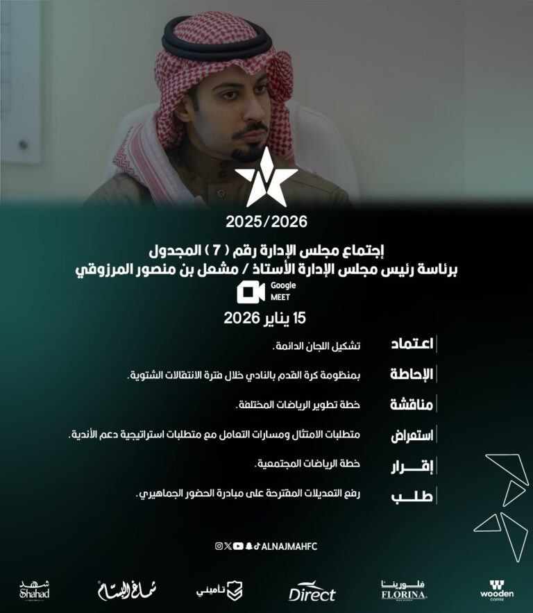 مجلس الإدارة يعقد اجتماعه السابع (المجدول) للموسم 2026-2025